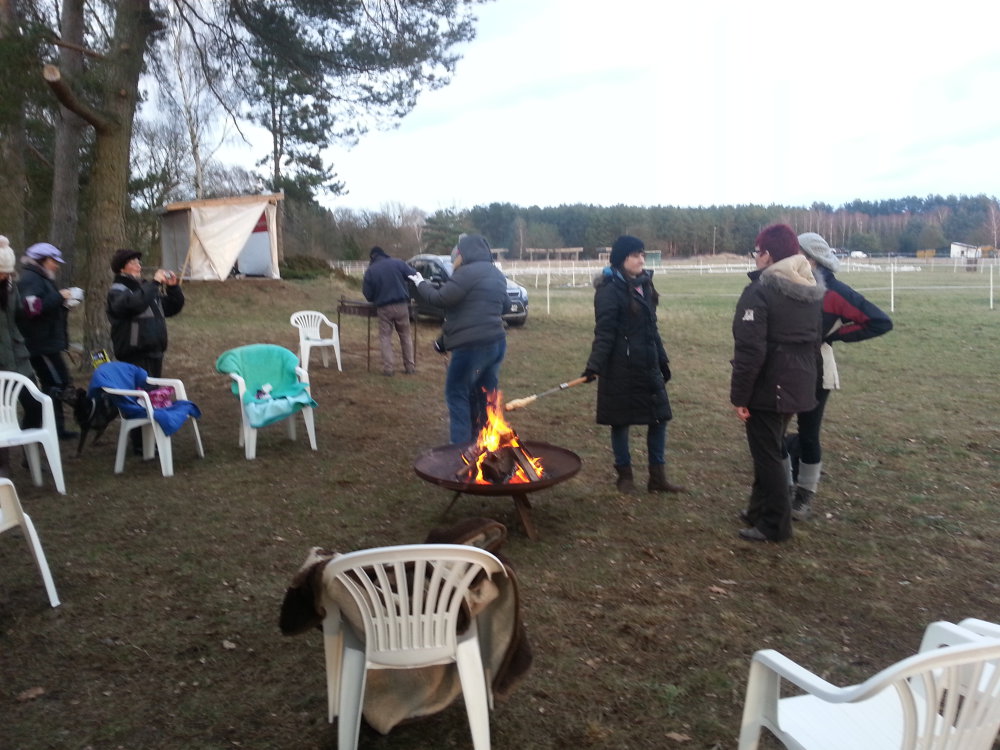 Neujahrsempfang 2015 Wir begrüßten das neue Jahr in gemütlicher Runde am Lagerfeuer und mit vielen Leckereien. Bratwürste vom Grill, Kuchen und auch Knüppelteig waren eine leckere Verführung. Glühwein, Kaffee und Tee wärmten uns innerlich obwohl es doch ein sehr lauer Wintertag war, und das Wetter es gut mit uns meinte. Kleine Geschenke gab es für Jedermann und wir freuen uns auf die bevorstehende Saison. |