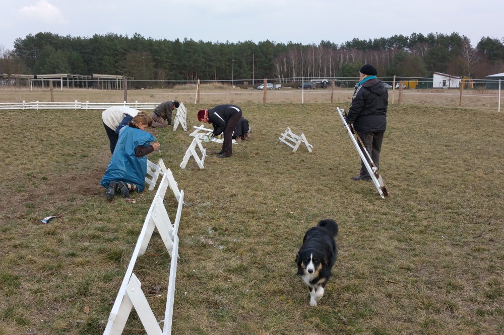 Frühjahrsputz Am Samstag den 28.03.2015 machten wir unseren Vereinsplatz "Frühjahrsfit". Die Hindernisse sind wieder auf dem Springplatz aufgestellt und das Viereck bekam einen frischen Anstrich. |