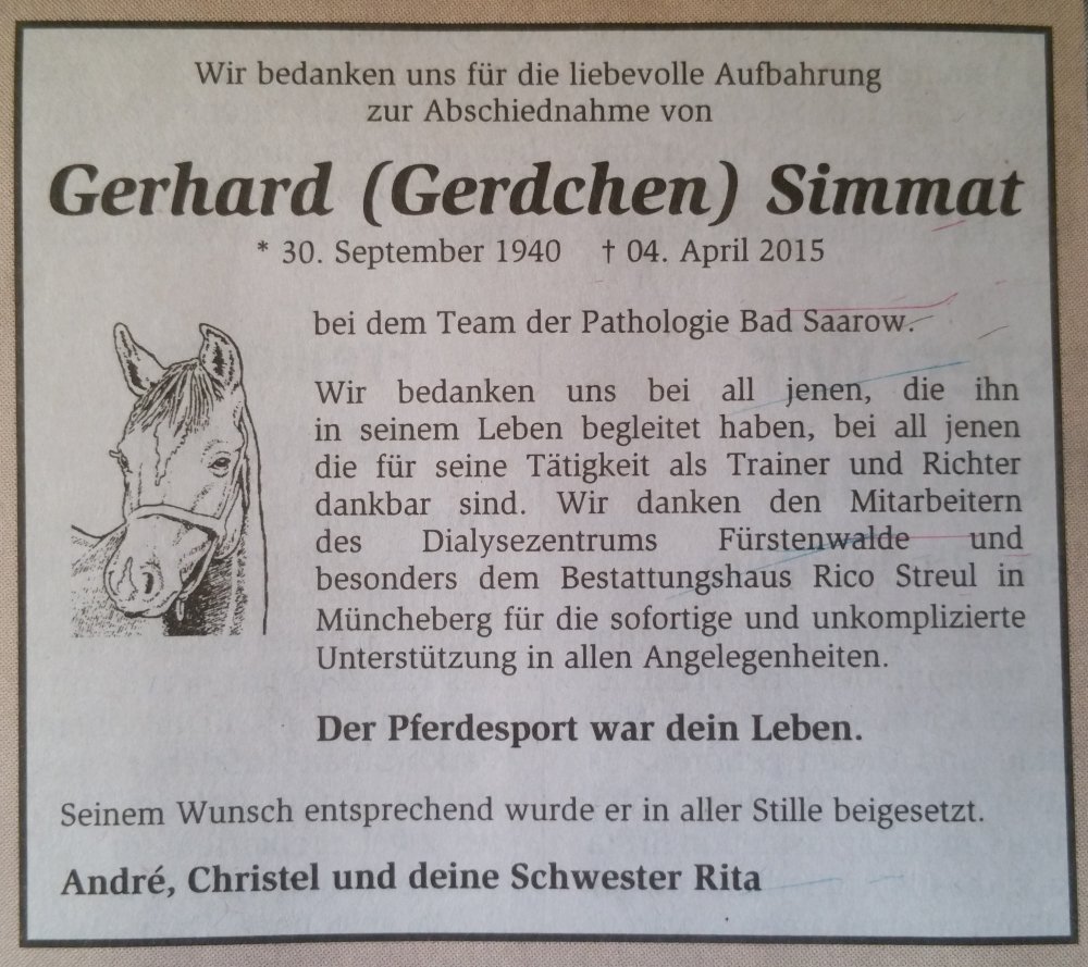 Ein letzter Abschied ... im ewigen Gedenken an "Gerdchen" Simmat.